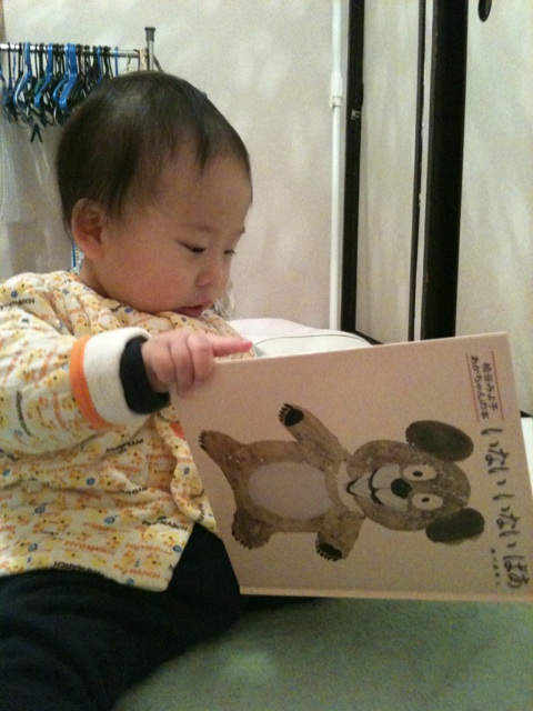 千葉。 明日は寒くなるらしいですよ。 マーマリンです。 昨日わたくし、ママさんボランティアサークルの定例会にいってきました。 ジャンは一時保育に預けてみました。 ギャーギャー泣くかと思いきや、私が居なくなった瞬間と、おやつタイムに私の作ったミニオニギリを見た時くらいだそうです、泣いたのは。 オニギリ見て私を思い出すって私の印象ってどんな風に位置付けられてるんでしょう。興味深いですねぇ。 家に帰って、たまった家事をしているとジャンは奥から絵本をひっぱり出して一人で読んでます。 なんか喋ってます。 「とーぃた!とーぃと!」トカナントカ。 最近よく絵本を眺めてるので、そろそろ興味出てきたのかな?と思い、寝る前に読み聞かせました。 私の胡座の真ん中に座り、優しく読み始めました。 しかし、気に入らないページは勝手にめくり、途中で絵本を取り上げられました。 その後はご自分で読まれてました。 紙のペラペラした本はまだ上手にめくれないようで、分厚い厚紙の角の丸い本ならめくれるようです。 小さい指でめくってるうちに、段々興奮してきたのか、騒ぎ出して眠りについたのは23:30をまわったところでした。 最近、遅寝遅起きが気になります。 忍者ブログ [PR]