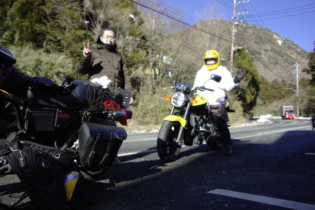露天風呂です!超気持ちヨイヨイ!梅の花を眺めながら最高です!あー・・・極楽極楽。。。 カポーン・・・という音はしなかった。。。 コチラの温泉施設の料金体系と接客態度に、疑問と憤り が沸きあがるのをグッとこらえ、二つの意味で温まった我々は、気を取り直して次なる目的地へGo![]() 一路芦ノ湖へ。そこには素晴らしい景色がまっているのです! ペカー※元箱根港ではこんな絶景が見られるそうです。楽しみワクワク ![]() 芦ノ湖に至るまでは、山を越えます。今回のツーリングで一番の難所です。路面凍結の恐れがあるので、ゆっくり安全運転で進むのです ![]() ※寒い寒い!雪が残ってるし! 山に入ると、マジで雪 が積もってる(汗)ぱねぇ・・・まぁ太陽 も出てるし路面も乾いているようだし大丈夫でしょう。と思っていると、リアタイヤが「ツルっ」としました。ぐおおおお!!滑るー!! やはり気は抜けません。既に湯ざめ仕切った我々は二つの意味でガチガチにハンドルを握りしめるのです。 ※ちなみに、スリップしてたのは僕だけでした。本当にビビリます 奥さんが滑らなくて良かった。流石大阪人。ちょっとやそっとじゃスベりません!そんなこんなで、少し涙目になりながらも漸く芦ノ湖に到着!さぁ絶景を見て、怖かった思いを吹き飛ばそう! がしかし・・・ あれ? 無いね・・・ 富士山無いねぇぇぇ!!(泪) なんという事でしょう。楽しみにしていた富士山 が見えません。不在でした。山なのに不在でした! 危険を冒してまで来たのに・・・テンション落ちます。ですが、記念写真とってテンションを上げるのです! ※変なポーズ・・・鳥居の上には富士山が見えるはずでした。 早々に観光スポットを引き上げる二人。さぁ、スイーツ を食べて帰るぞ!!奏~待ってろよ~ 帰り道も山を越えます。嗚呼・・・スリップの感覚が蘇ります。緊張で手に汗がジワリとしてきました。 続く・・・ PR